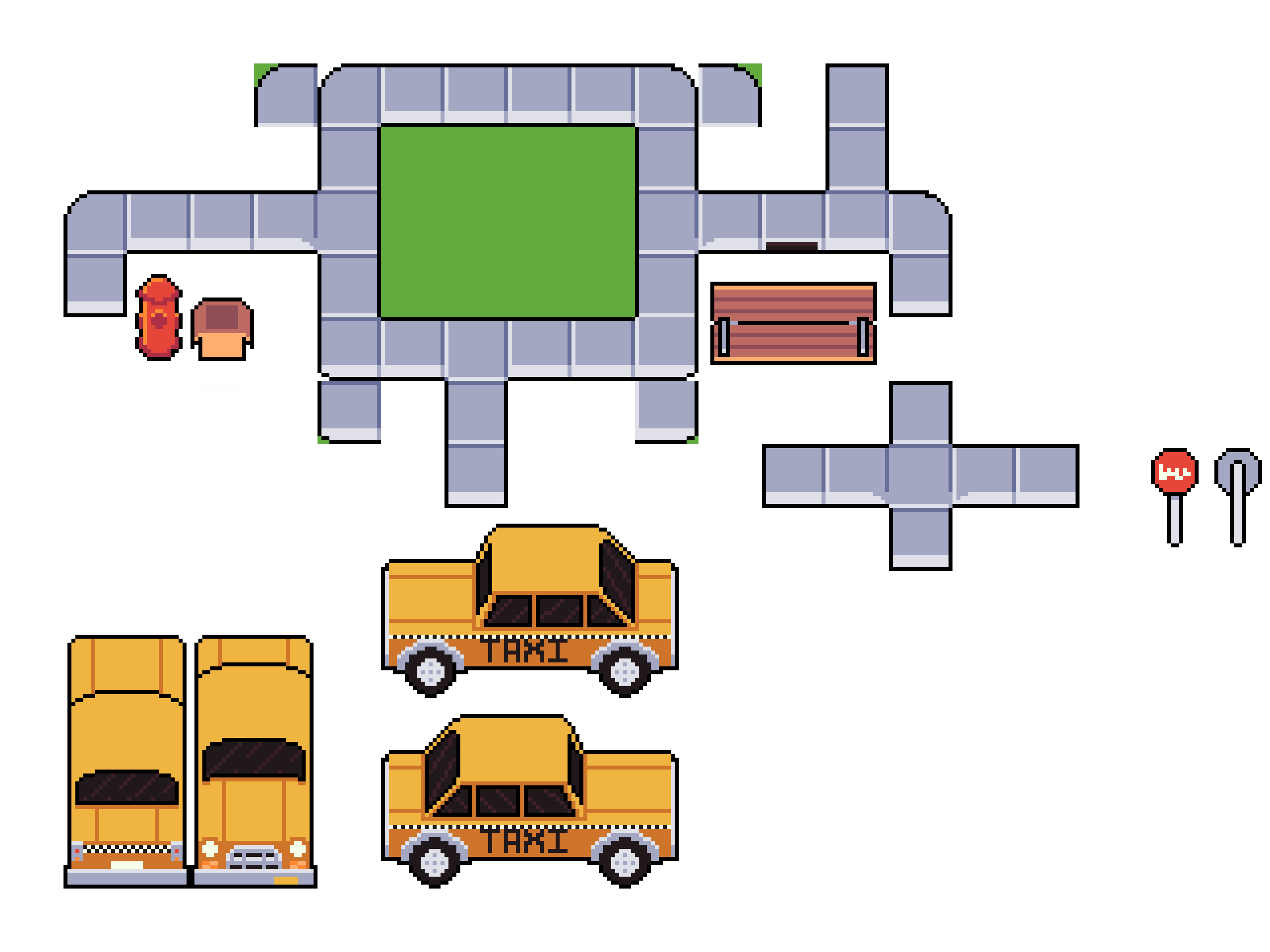 Pixel streets is a pixel art asset designed to help you make your pixel art worlds come to life!